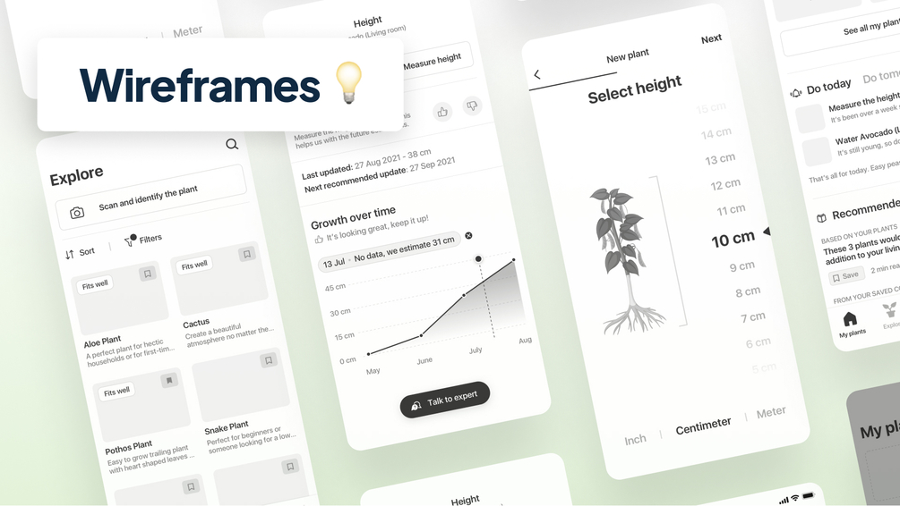 In this workbook, we’ll design an app together, from scratch. It’s an app that lets the user take care of their plants and track their growth. Even though we're designing a mobile app, the things you'll learn will also apply to web design.