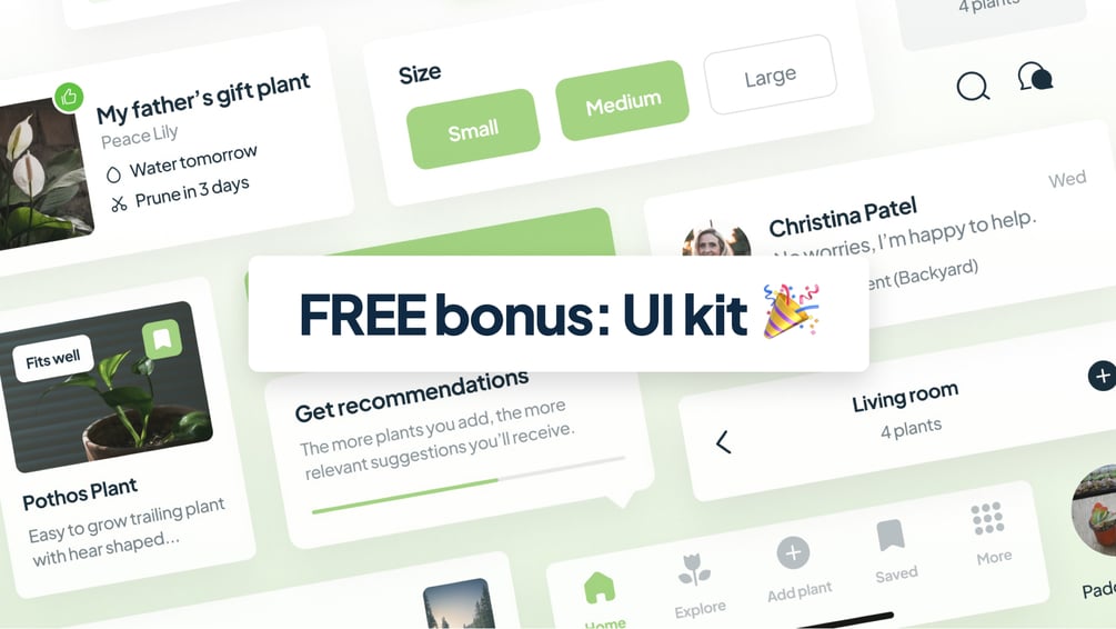 🎨 Unique UI Kit (Figma), made out of the components from the app that we’re designing in this workbook. It will not be released anywhere else. Valued at €14.90.